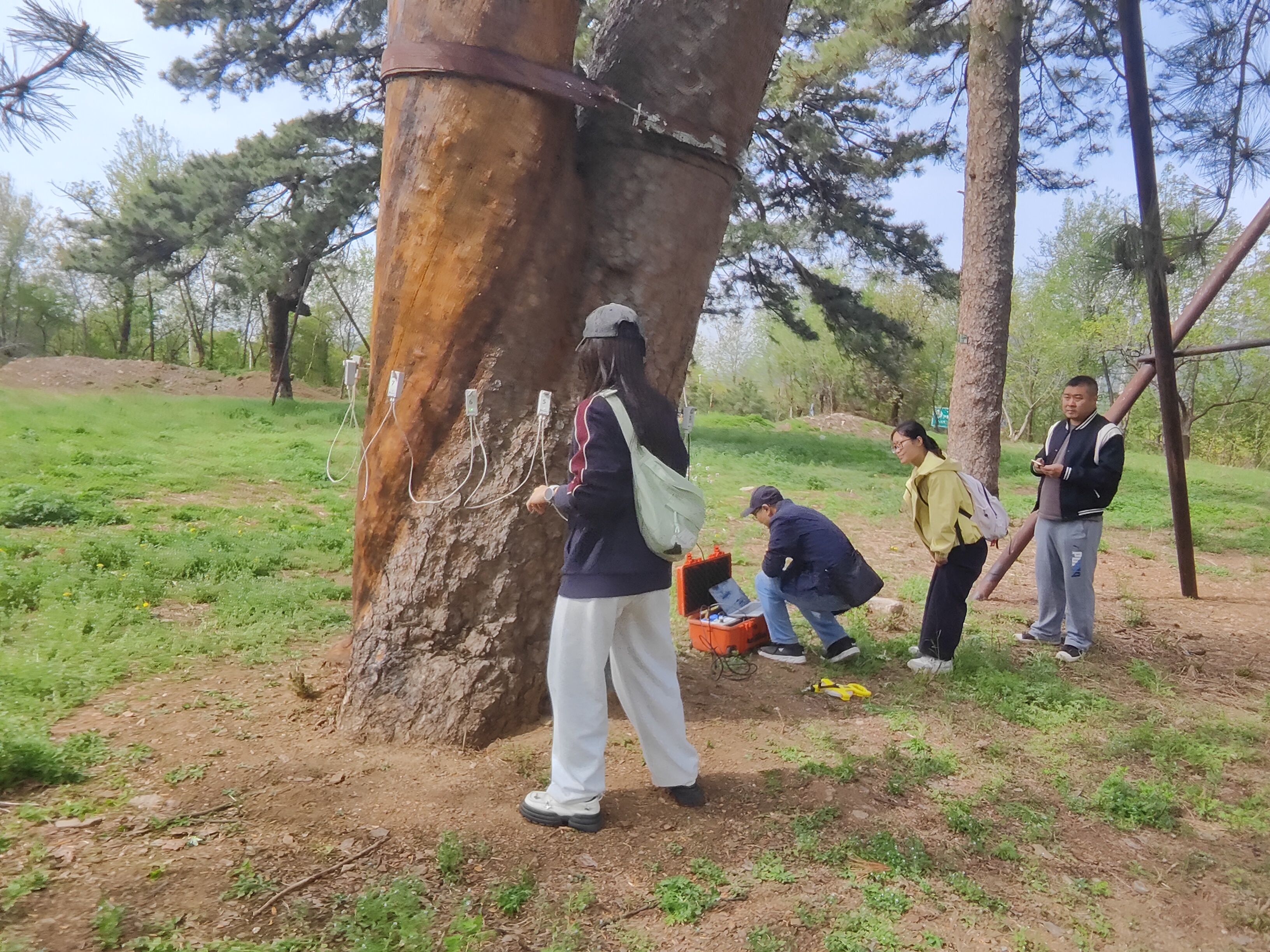 2026年4月21日,古树名木保护重点实验室胡增辉教授带领古树保护专班研究生,前往明十三陵开展重点古树空腐专项检测工作。